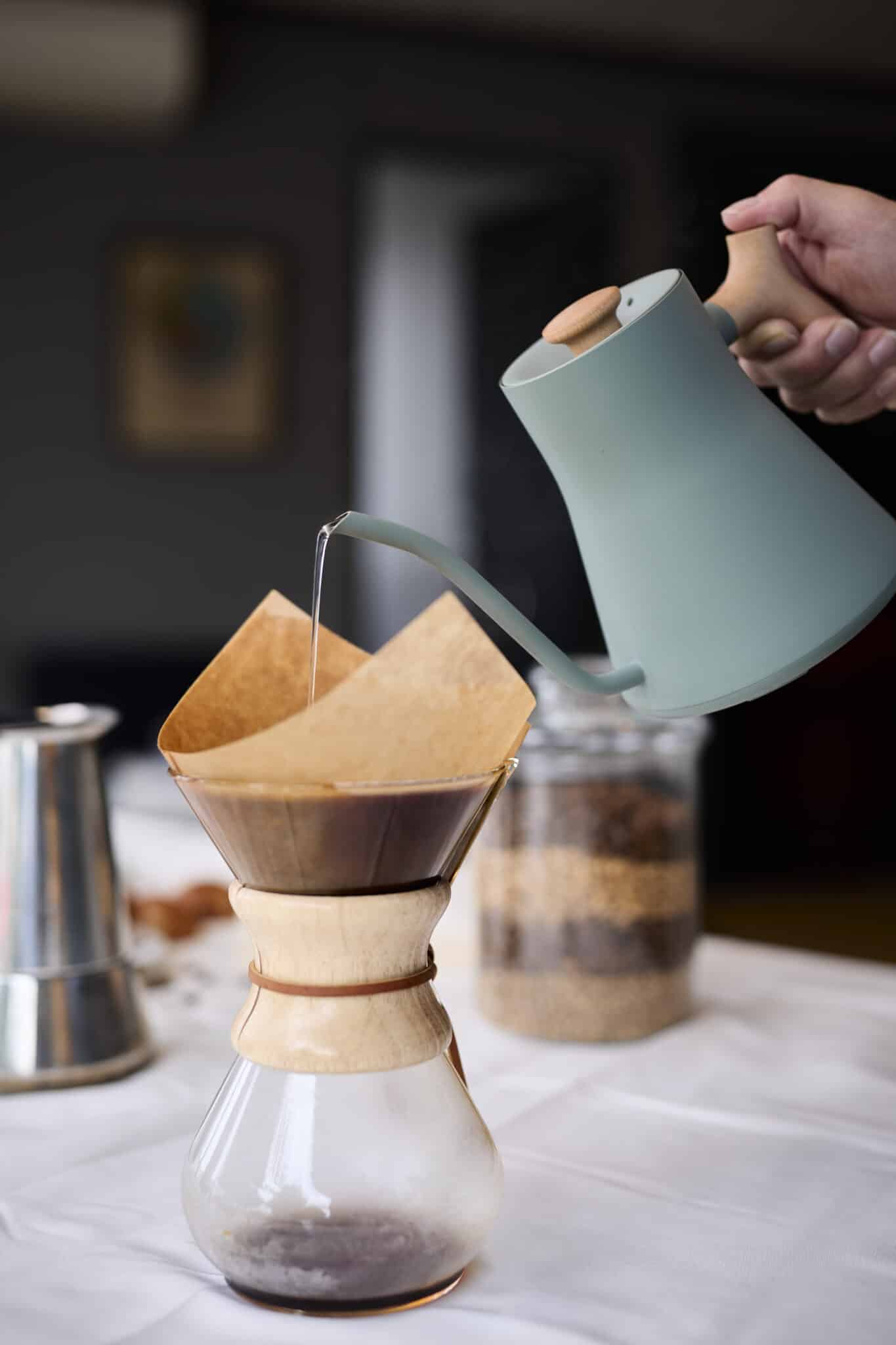 Grâce à ses filtres en papier épais et très peu poreux, la Chemex retient le marc ainsi qu’une grande partie des huiles du café. Le résultat en tasse est d’une grande clarté : un café filtre limpide, doux et parfaitement équilibré, qui révèle avec finesse la typicité de chaque terroir.